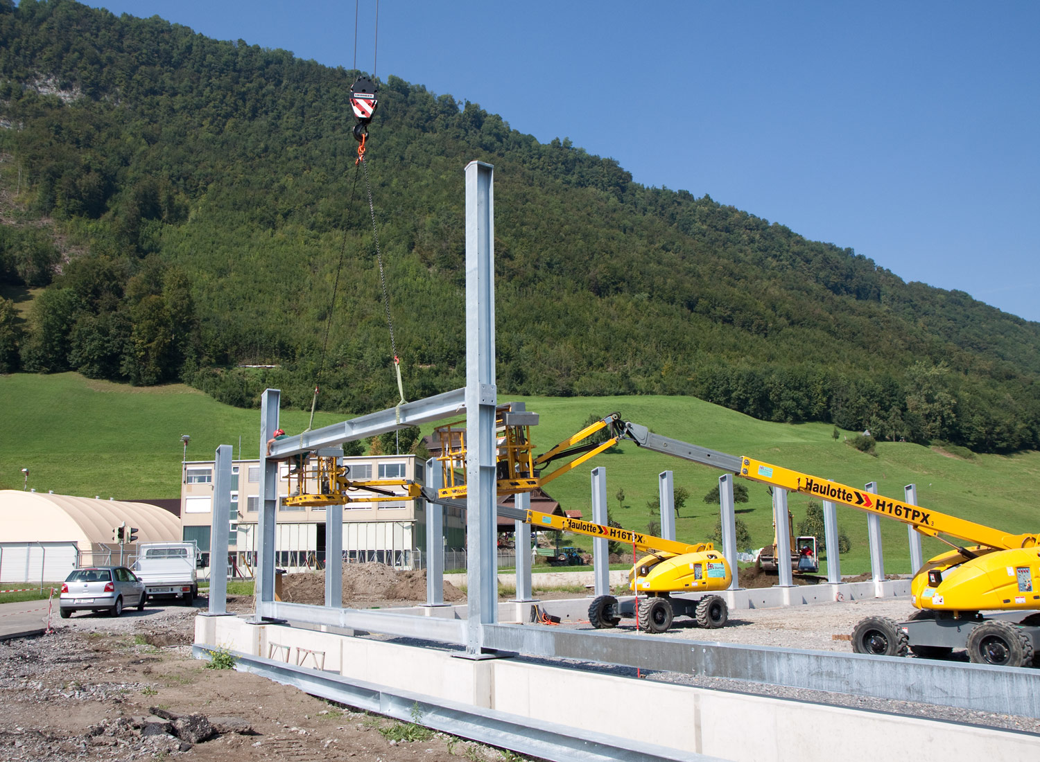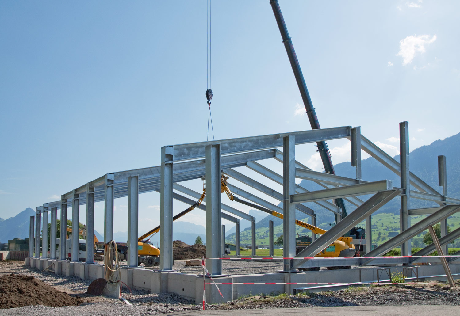 Verbindungsträger aus Stahl sind ein beliebtes statisches Bauelement, wirken leicht und ermöglichen vielfältige Konstruktionsmöglichkeiten mit höchsten Spannweiten. Dadurch entstehen Werks-, Lager- und Produktionshallen in kürzesten Produktionszeiten.